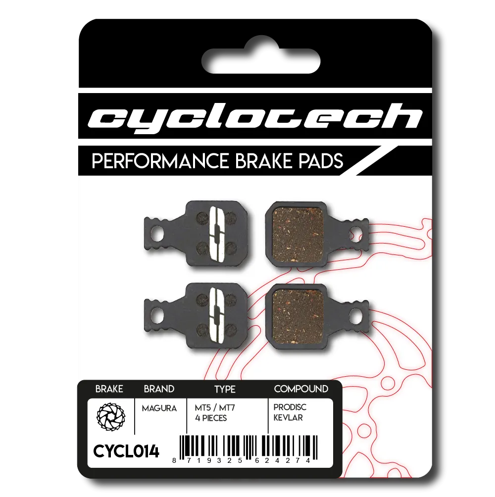 Egal ob Sie in der Stadt, auf dem Trail oder auf einer Tour unterwegs sind, die Cyclotech Prodisc Kevlar Bremsbeläge sind der perfekte Partner für Ihr Magura MT5 - MT7 mit vier losen Bremsbelägen Bremssystem und bieten: